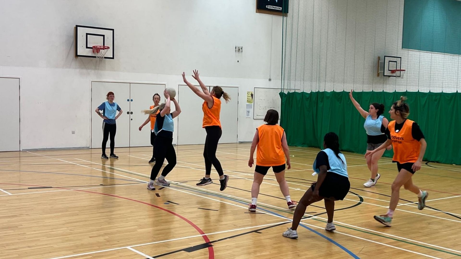 If playing 5-a-side with us, you’ll always play inside (unless it’s school exam season in the Summer). Plus, players can bounce the ball off the walls so there is no ‘out of court’ like there is with traditional netball.